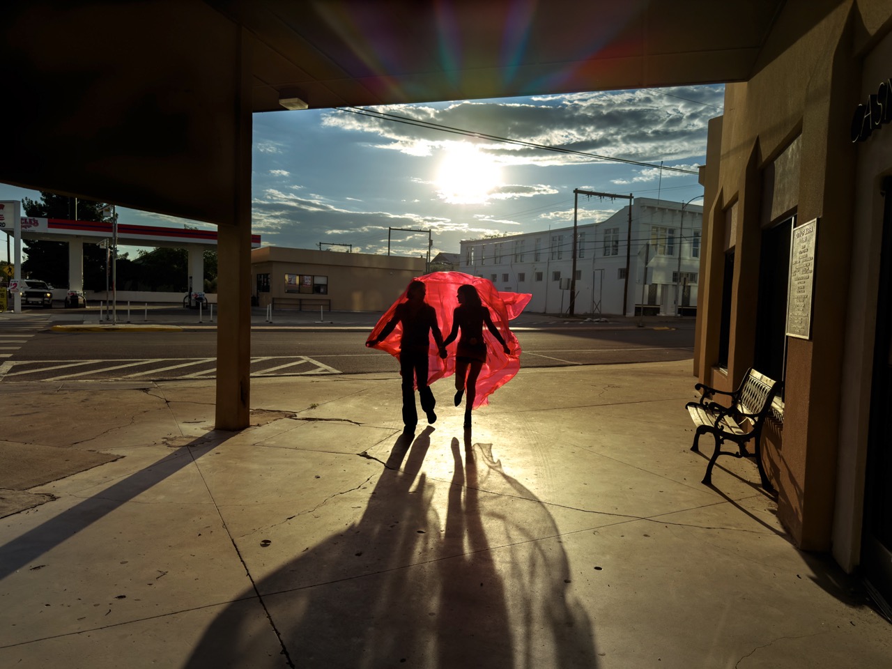 Alle spalle dei due amanti, nello scatto protagonista della mostra, si staglia un paesaggio texano che suggerisce un viaggio verso un futuro fragile, dove la fuga nella natura diventa condizione essenziale per ogni possibile “paradiso”. Le fotografie esposte sono infatti state scattate a Marfa, in Texas, come parte della mostra itinerante Joy, In 3 Parts, curata da Kathy Ryan in collaborazione con Apple. C’è un dettaglio che in molti noteranno solo leggendo le didascalie: queste immagini sono tra le prime mai realizzate con l’iPhone 17 Pro Max. Non come esperimento amatoriale, ma come vera e propria esplorazione professionale. E mentre guardiamo i colori, la luce, i dettagli che emergono con nitidezza, ci rendiamo conto di quanto il dispositivo sia diventato parte integrante della pratica fotografica contemporanea, è una riflessione immediata e che ci accomuna. Apple, offrendo agli artisti uno spazio creativo non legato a esigenze editoriali o commerciali, sembra dire: “Ecco uno strumento. Fatene un’estensione del vostro sguardo.” E Inez & Vinoodh l’hanno fatto, con una naturalezza che lascia intuire cosa significhi usare la tecnologia non come limite, ma come territorio nuovo da esplorare con curiosità ed entusiasmo.